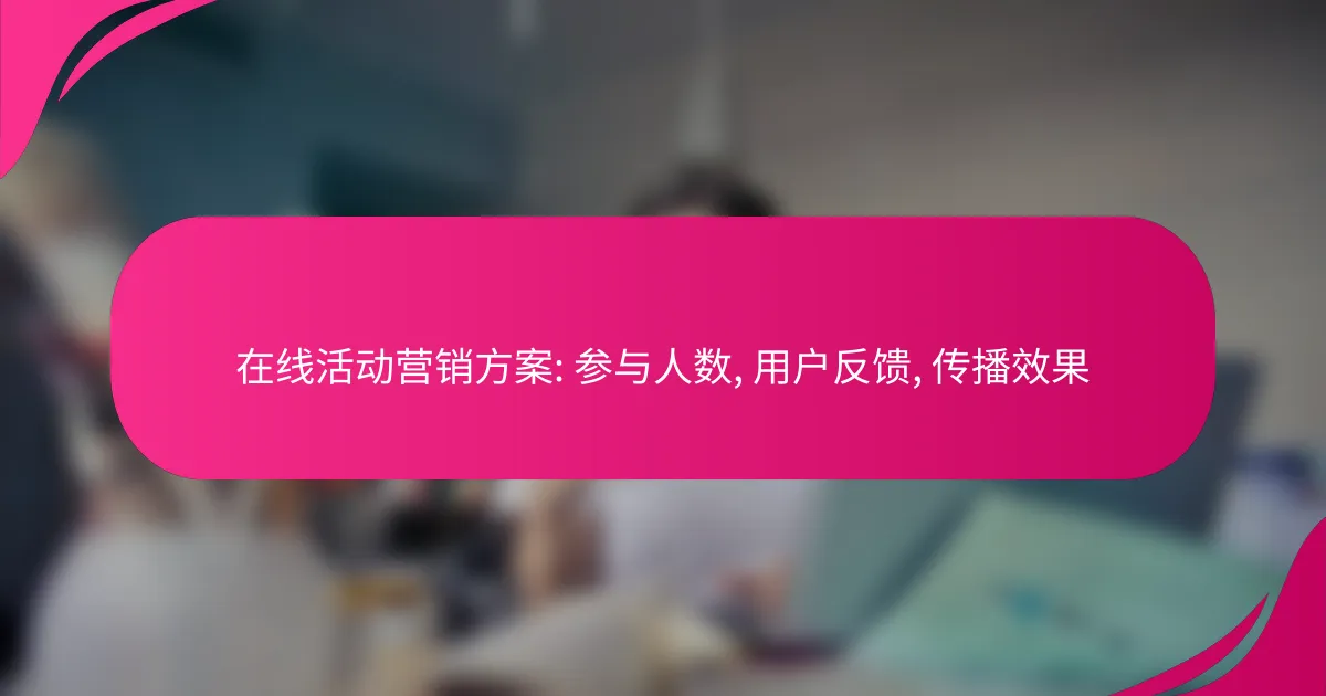 在线活动营销方案的成功依赖于有效的参与人数提升策略、用户反馈收集和传播效果评估。通过优化推广方式和活动时间,可以显著增加参与者的数量。同时,及时获取用户反馈有助于不断改进活动,确保其更具吸引力和影响力。
