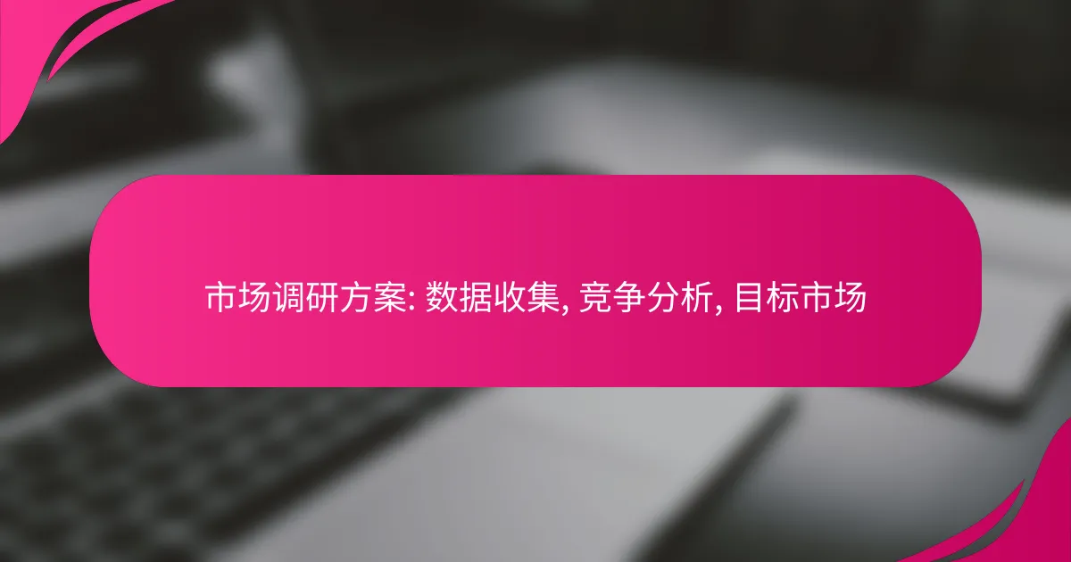 市场调研方案的最佳实践包括系统化的数据收集、深入的竞争分析和准确的目标市场识别。这些步骤帮助企业更好地理解市场动态和客户需求,从而制定有效的商业策略。