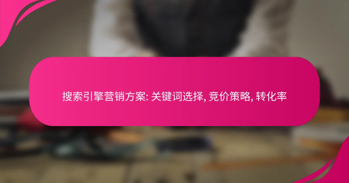 搜索引擎营销方案的成功在于精准的关键词选择和有效的竞价策略。通过优化广告内容和合理预算,可以显著提高网站的曝光率和转化率。此外,深入理解用户需求并改善用户体验是提升转化率的关键所在。