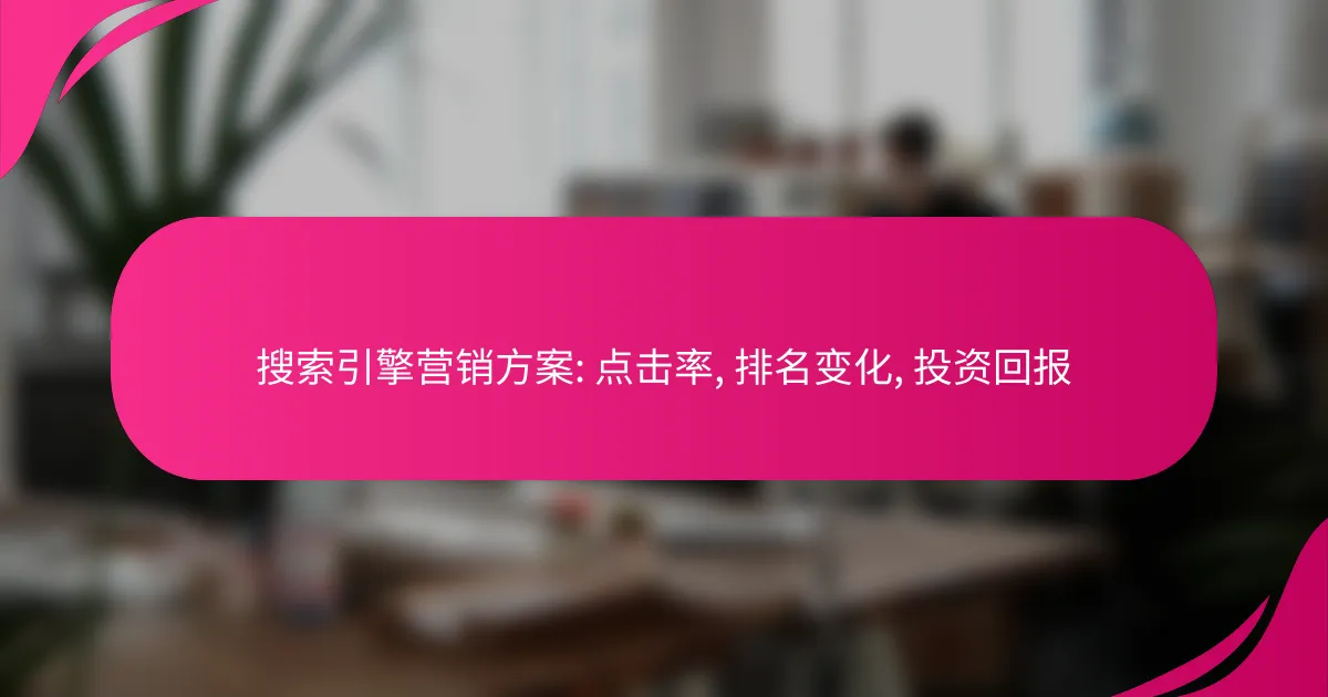 搜索引擎营销方案的成功依赖于多个因素,包括点击率、排名变化和投资回报。通过优化广告文案和目标受众,可以有效提高点击率,而监测排名变化则有助于及时调整策略。投资回报率是评估营销效果的重要指标,帮助企业优化策略以提升盈利能力。